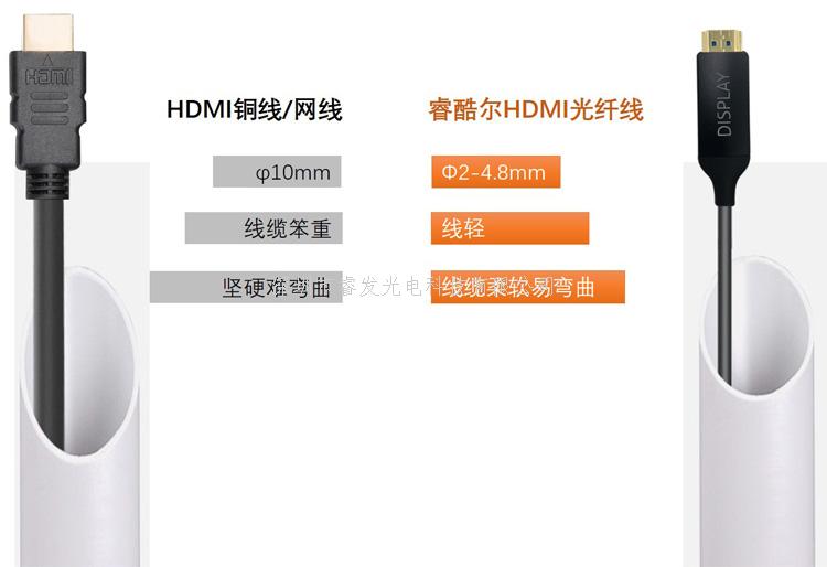 除此之外,HDMI光纖線還具有保密性強,抗腐蝕能力強,無輻射,能耗低等優(yōu)勢特點,無論是民用,工業(yè)用還是軍事上的使用,都可以滿足需求。HDMI 8K標準已經發(fā)布,國內外電視廠商也發(fā)布了8K電視,面對更高的規(guī)格要求,HDMI銅線滿足實現(xiàn),不久的將來,光纖HDMI會取代銅線成為高清信號傳輸標配。